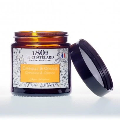 Francouzská přírodní svíčka ve skle - SKOŘICE S POMERANČEM