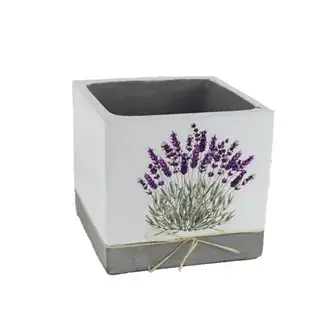 Květináč levandule hranatý,, bílo-šedý. Krásná dekorace do Vašeho bytu i na terasu. K použití na živé, umělé i sušené květiny.
